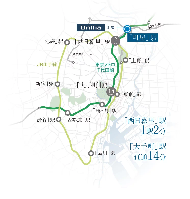 東京メトロ千代田線「大手町」駅直通14分、都心を自在に駆けるアクセス性。