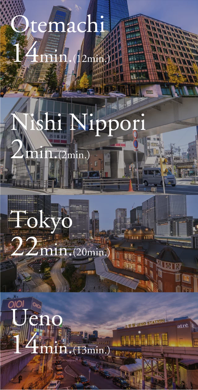 隣駅の「西日暮里」駅からはJR山手線・京浜東北線にも乗り換え可能。